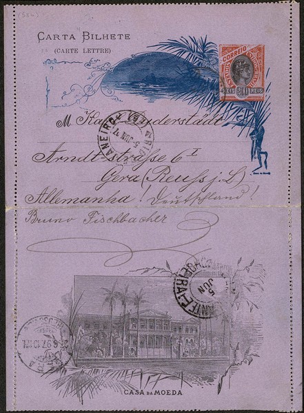 58G – 200Rs – Ano 1897 – Circulada de São Paulo para a Alemanha, com carimbo de transito chegada – 240 UF = /- R$ 1.300..