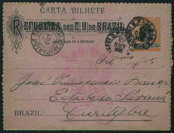 70J – 200Rs – Ano 1906 – Circulado de São Paulo para Curitiba, com chegada. Sem parenteses antes de Neste. Sem cotação no catalogo para circulado. Sem uso ele cota 600 UF …