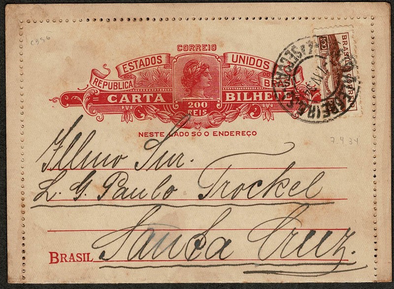 96 – Ano 1934 – 200Rs selo pró aeroportos, circulado de Porto Alegre para Santa Cruz (RS) Ferrugem frontal.