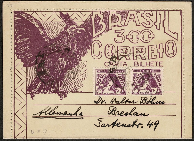 99 – Ano 1937 – 300Rs selos vovó complementares, circulado de S.Paulo para a Alemanha. Muito bem conservado