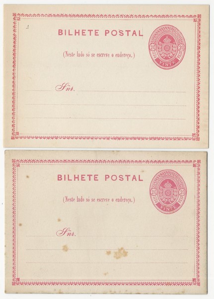 1 – 20Rs – 2 exemplares sem uso e em gramaturas (espessura) de papéis diferentes : 290/300 micras (normal) e 390/400 micras (pontos de ferrugem).