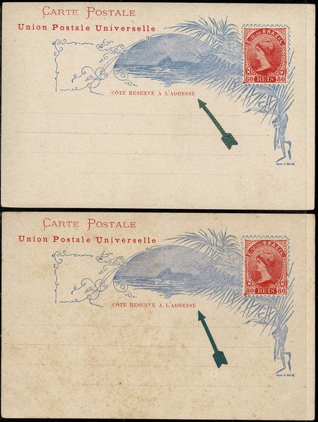 30 – 80Rs, 2 exemplares sem uso (um em qualidade européia e o outro com pontos de ferrugem) Variedade não catalogada: Sem parenteses após adresse. 440 UF = /- R$ 2.400.