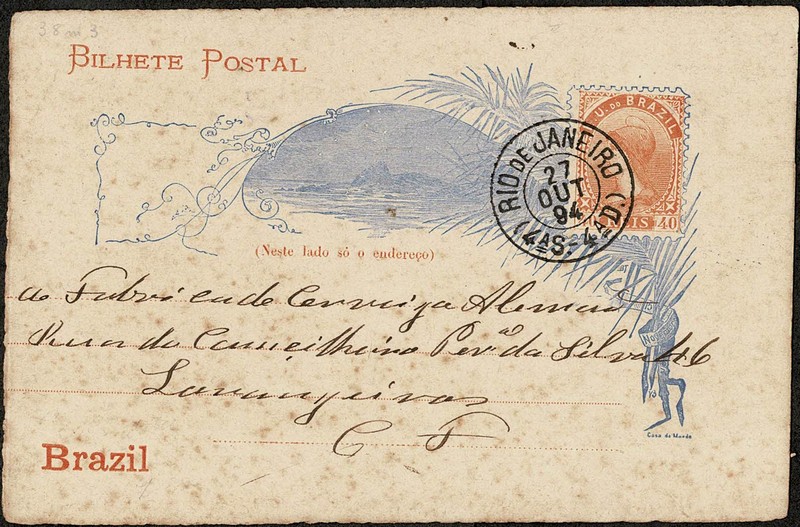 38m3 – Ano 1894 – 40Rs – Circulado dentro da cidade do Rio de Janeiro com chegada. Pontos de ferrugem – 110 UF = /- R$ 600