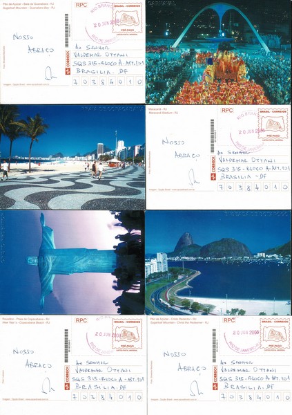 221, 222, 223, 224, 228, 229, 230 e 232 – Série Pontos Turísticos do Rio de Janeiro. Todos circulados em 2008 do Rio de Janeiro para Brasilia