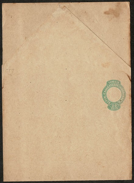 10 – 20Rs – Ano 189 ? – Circulado de S.Paulo para a Italia, com um dos selos complementares arrancado. Variedade : RFIS no lugar de REIS.