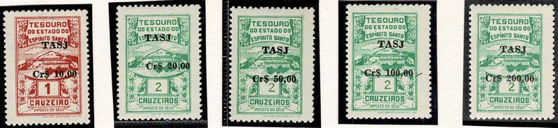 Espirito Santo – * Taxa de Assistência Judiciária – Ano 1956 – FC 1/5 – Série completa. Lote 0964 da nossa 70ª VSO, agora oferecido com 20% de desconto..