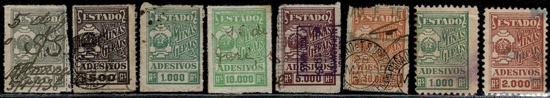 MINAS GERAIS – ◉ Adesivos – Anos 1907 e 1939 – FC 2/6, 8, 10 e 11 – Total 8 selos. …