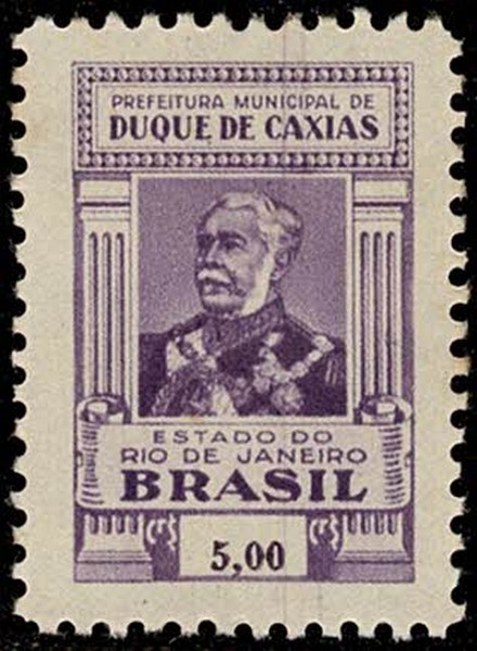 Rio de Janeiro – * MUNICIPAL – Duque de Caxias – Ano 1955 ? Facial 5,00 violeta, figurando Duque de Caxias. Não consta do estudo…