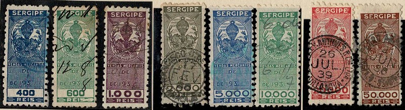◉ Sergipe – Vendas Mercantis – Ano 1935 – Balão Porvir – FC 3, 5, 6 a 11 – Total 11 selos. Lote 1.101 da nossa 70ª VSO, agora oferecido com 20% de desconto..