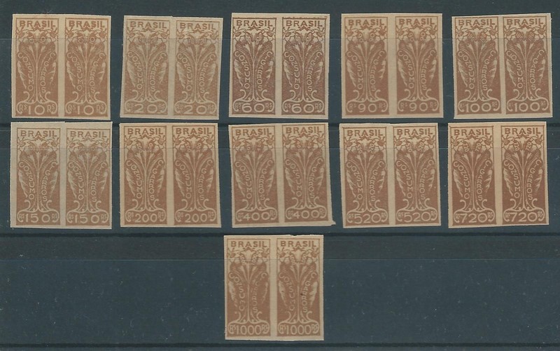 (*) Federal – Consumo (Cigarros) – Anos 1937/38 – Série completa 11 valores, em pares sem picote..