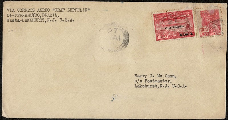 Zeppelin – Sieger 59E – Ano 1930 – Envelope circulado do Rio de Janeiro para os USA sem carimbo do vôo e sem chegada. Selo Z8 que usado cota 160 UF = /- R$ 880 selo vovó, danificado na lateral.