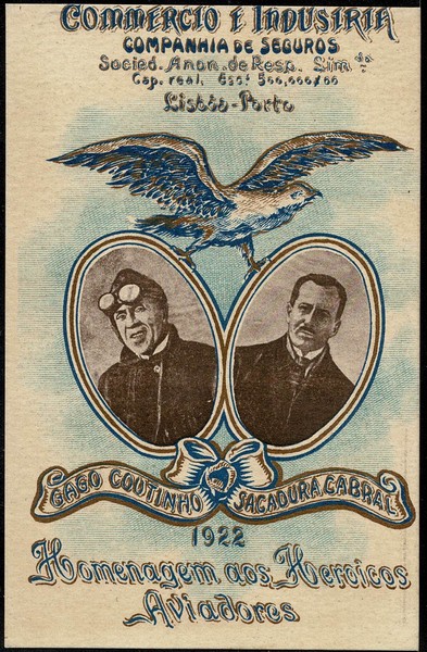 Outros/Diversos – Ano 1922 – Raro Cartão Postal Portugues, figurando Gago Coutinho e Sacadura Cabral. Sem uso, vertical e em qualidade/origem européia.