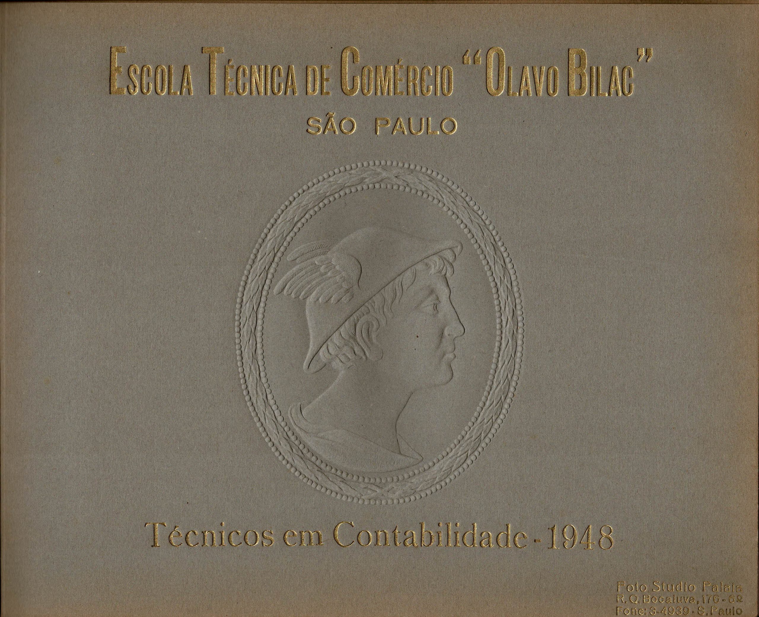 Fotos/Fotografias – ESCOLA TÉCNICA DE COMÉRCIO “OLAVO BILAC” (SP) – Album faltando 2 fotos dos formandos em técnicos de Contabilidade e demais integrantes da turma de 1948. Capa de MADEIRA, mas a frontal , solta