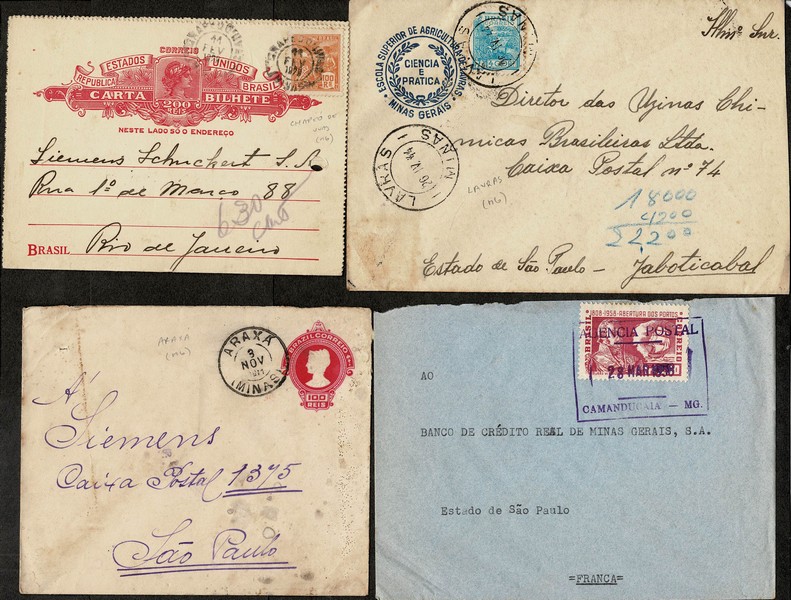 SÓ CIDADES DE MINAS GERAIS – Pequeno lote com 40 peças circuladas DIFERENTES, quase todos envelopes e entre anos 1904 e 1970. Entre Administração dos Correios e Viçosa. Algumas da mesma cidade, mas em tipos diferentes. Mediante solicitação enviaremos a relação das cidades