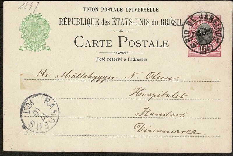 Ano 1898 – DESTINO DINAMARCA – Inteiro BP 57 (100Rs) circulado do Rio de Janeiro com chegada. Enviada no mesmo ano da sua emissão