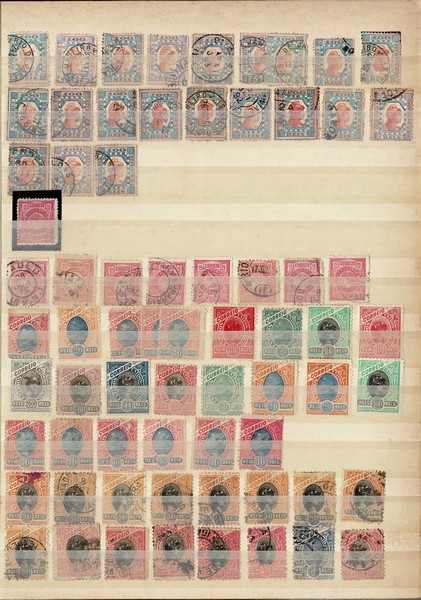 3 EMISSÕES DO COMEÇO DA REPÚBLICA – Cartelas com ao todo 358 selos, assim dividido pelas 3 emissões: Tintureiro (21 selos usados) Cabecinha (8 usados e 1 sem carimbo) e Madrugada Republicana (328 selos, englobando até o facial de 2$000 e destes, 23 estão sem carimbo, parte com sua goma original, incluso 1 de 2$000 em papel gessado, mas com minimo adelgaçamento)