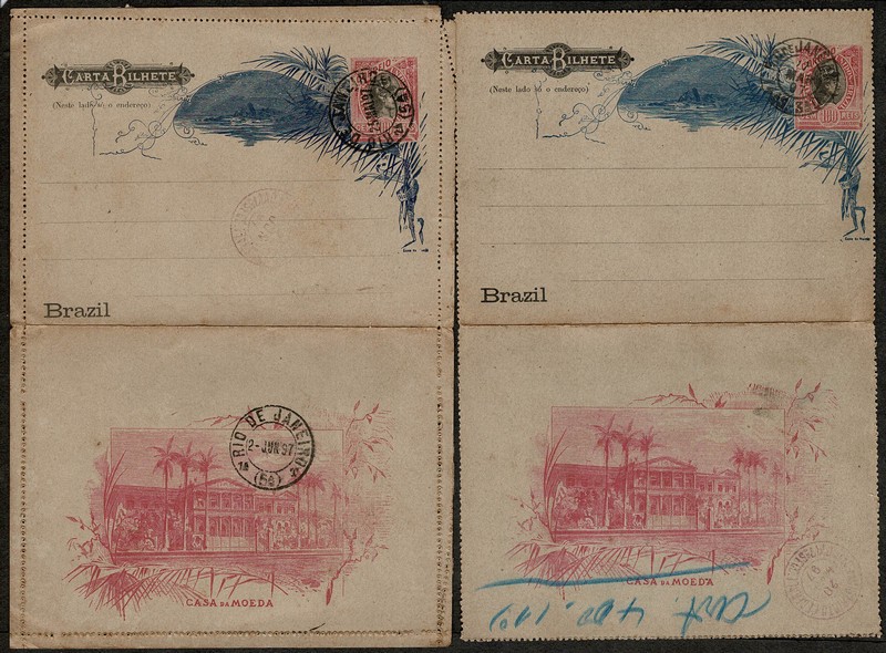 Ano 1897 – DEVOLVIDAS – 2 Carta Bilhete(figura da Madrugada) postados mas sem endereçamento. Ambas saindo do RJ, sendo uma com data de 17?.Maio e no verso carimbo em roxo do dia 20.Maio e manuscrito : Art 400, (1º) – Deve ser o artigo que trata deste tipo de correspondencia. A outra é datada de 25.Maio, carimbo no versos de 2.Junho e depois um roxo frontal com data de ? de Junho. Como podem ter sido aceitas e como foi feita a devolução ?..