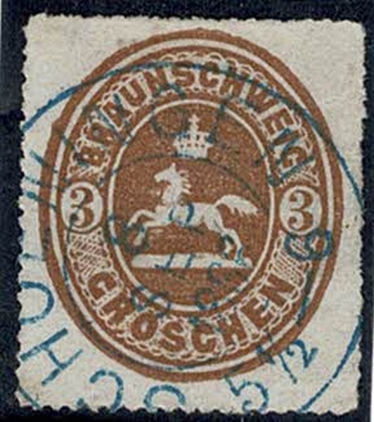 ◉ Braunschweig – 20 – Carimbo quase 100% com data : 8.9.1866 – 200 Euros .