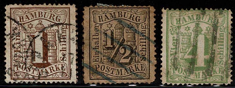 ◉ HAMBURGO – Michel 10, 11 e 16 – Usados – 70 Euros..