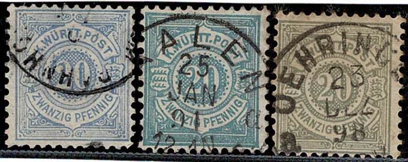 ◉ Wurttemberg – 47a, 47b e 47c – As 3 cores. A cara, com minimo claro – 273 Euros.