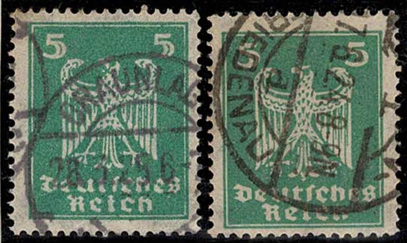 ◉ 356 – 2 selos com a mesma variedade que não consta no catalogo Michel: Falta da lingua na Aguia.