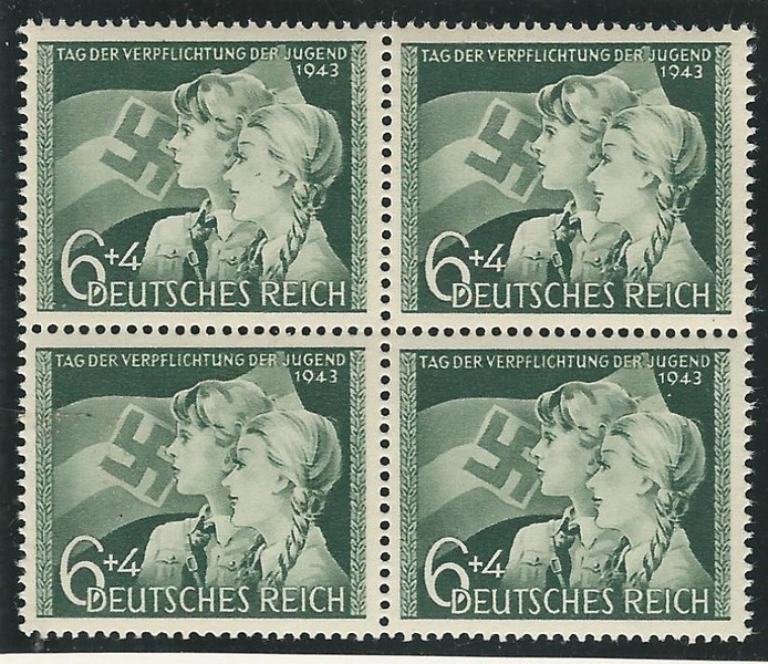 ** Especial 843 III em quadra com 3 selos normais – 93 Euros .