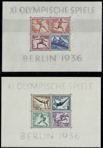 ** Blocos 5 e 6 – Olimpíadas de 1936 – Ambos **. Qualidade e origem europeia – 280 Euros