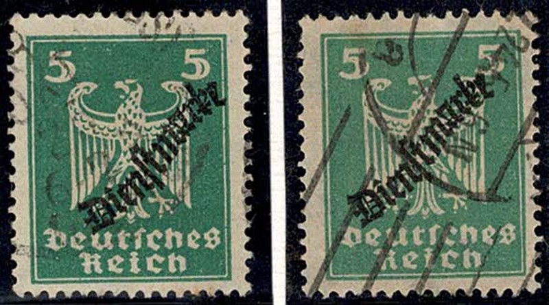 ◉ Serviço 106 – 2 selos usados com a mesma variedade não catalogada no selo tipo: sem a lingua.