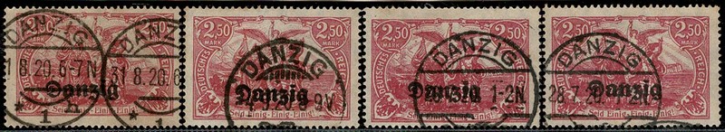 ◉ 12 – Quatro selos com belos carimbos – 60 Euros pela cor barata..