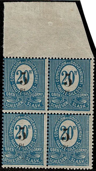 ALTA SILÉSIA ** Especial 10 XV – Quadra – Margem superior de folha, ficando o 1º selo com a variedade.
