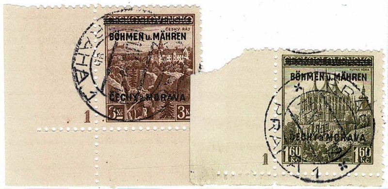 ◉ BOHEMIA e MORAVIA – 13 e 16 – Ambos com nº de chapa no canto inferior esquerdo da folha. nº 1 – 150 Euros.