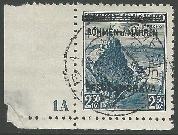 ◉ BOHEMIA e MORAVIA – 14, com nº de chapa no canto inferior esquerdo da folha – nº 1A – 220 Euros.