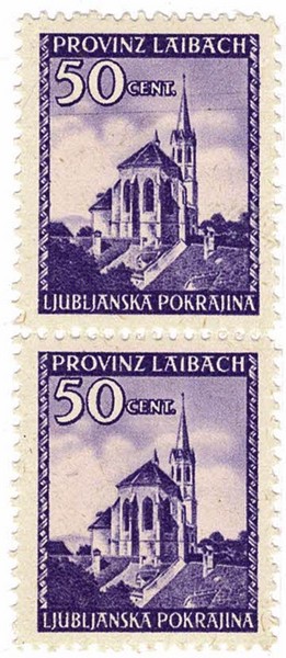 ** LAIBACH – 49 I (variedade), em par vertical com selo normal – 140 Euros