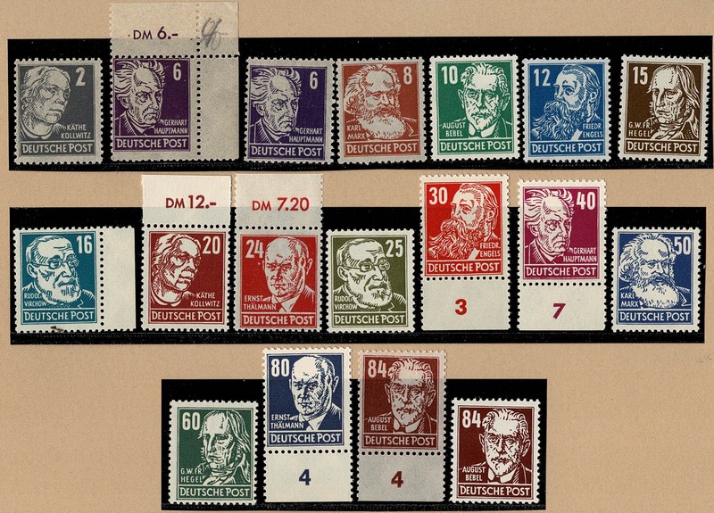 Zona Soviética ** 212/227 – Série completa, com 2 cores do 6Pfg e 2 tipos de papéis no último valor – Cerca de 80 Euros