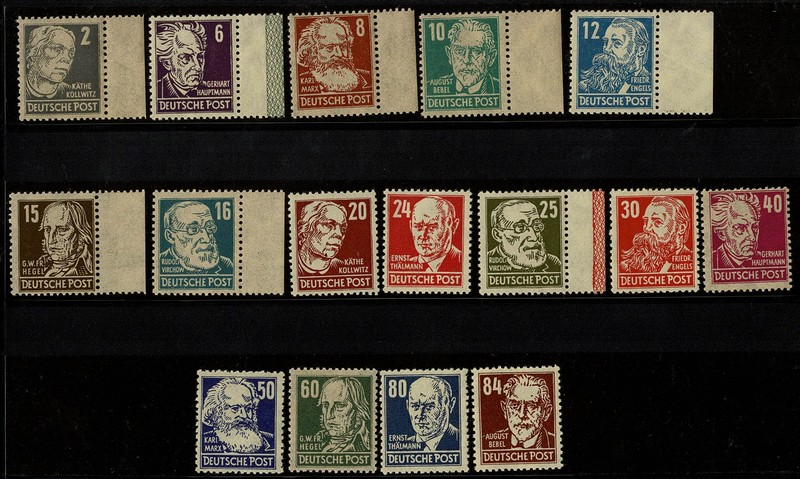 Zona Soviética ** 212/227 – Série completa. Parte margem de folha – 65 Euros