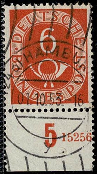 ◉ 126 – 6 Pfg Corneta, com n° de chapa parcial na margem inferior. Preço para o par : 250 Euros.