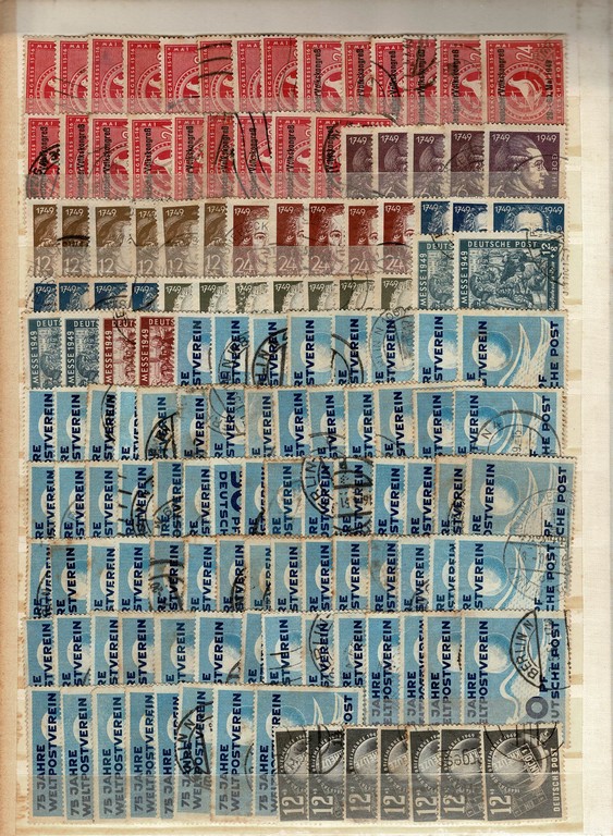 (*)/*/ ◉ ZONA SOVIÉTICA BIZONA – Volumoso conjunto composto de 2 setores: Classificador com vários milhares de selos, com e sem carimbo, começando nas Zonas Aliadas, passando pela Bizona e depois a Zona Soviética (emissões gerais) até antes da DDR. Depois temos uma interessante coleção montada em folhas quadriculadas outras, com de 1.200 selos DIFERENTES, desde o selo Michel # 242 até o # 2170, todos usados/carimbados e bem abastecida, com boa parte das boas séries do começo (sem os Blocos) Seguramente um bom valor de catálogo