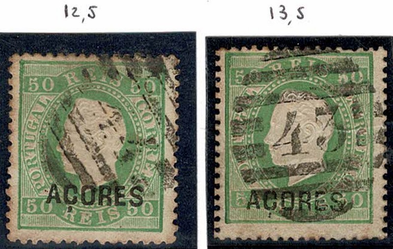AÇORES – ◉ 23 – 2 selos nos picotes 12,5 e 13,5 – 105 Euros pelo Yvert e 150 Euros pelo Afinsa…