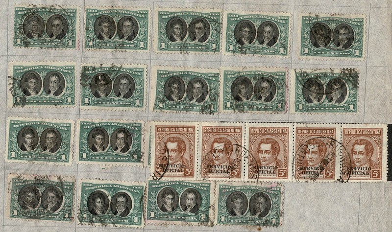 ARGENTINA ◉ Caixa com pouco + de 7.000 selos diversos, predominando os regulares. Numa olhada “por cima” entre décadas de 30 e 80