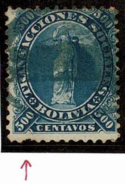BOLÍVIA – ◉ Fiscal Postal 5 – Falta 1 picote na parte inferior (250 Euros).