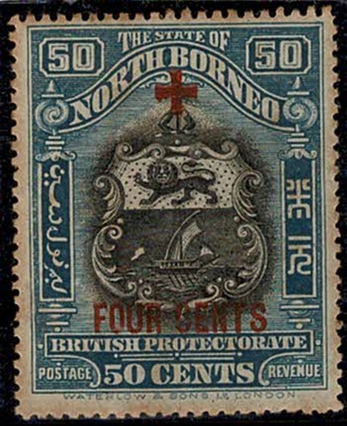 BORNEO – * 195 (Cruz Vermelha) – Picote 15. Não consta no Yvert. Nº 248a do Stanley Gibbons e cotando 60 Libras em 2008.