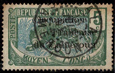 CAMARÕES ◉ 70 – Variedade: Sobreestampa dupla. Sem cotação no Yvert. Marca de dobra ao longo do selo. Pontos de ferrugem. Expertizado Calvez