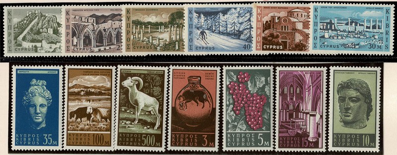 **/* CHIPRE – 194/206 – Série completa – 3 selos com pontos de ferrugem – 120 Euros.