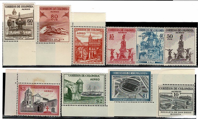 **/* COLÔMBIA – Aéreos 238/252 – Série completa, maioria **, quase todos margem ou canto de folha – 79,50 Euros – Diversos temas.