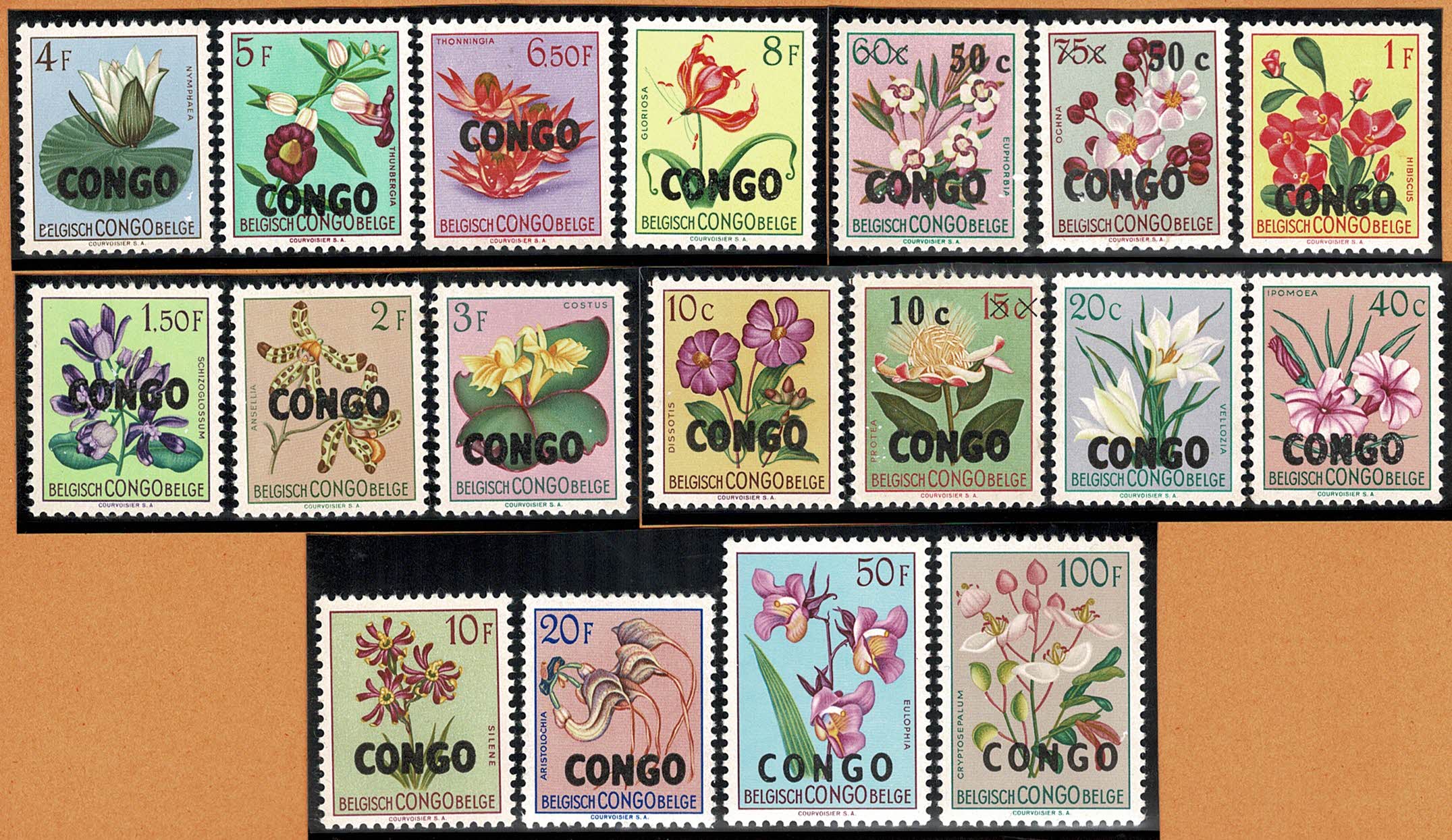 CONGO BELGA e INDEPENDENTE **/* 382/399 (Flores) Série completa – 73 Euros.