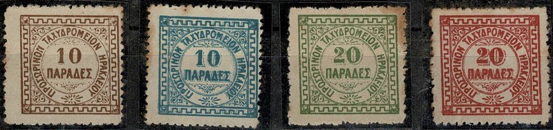 CRETA – (*) Escritório Inglês em Heraklion – Yvert 2/5 – Série completa – Só 5 selos emitidos por este escritório. Parte com pontos de ferrugem + acentuados.
