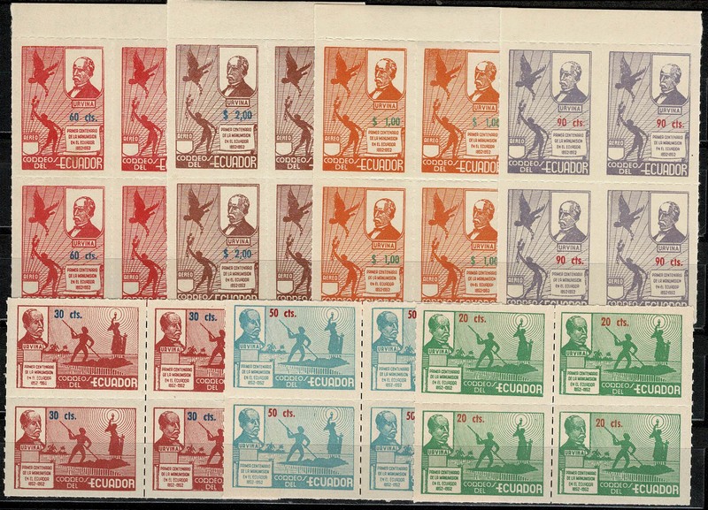 **/* ECUADOR – 551/2 Aéreos 237/40 – Série completa em quadra. Apenas 2 selos * no conjunto, restante ** – 68 Euros
