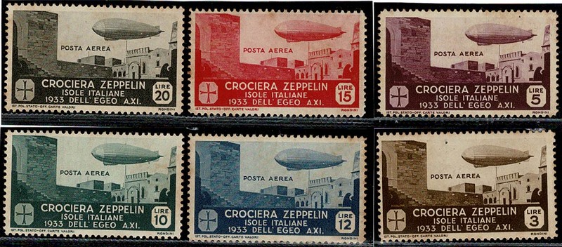 * EGEO – Aéreos 22/27 (Zeppelin) – Série completa com ferrugem – 250 Euros no Yvert e 700 Euros no Sassone.