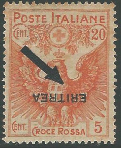 * ERITRÉIA – 43a(A) – Sobreestampa invertida. Pontos de ferrugem acentuados. Duplamente expertizado A.Roig – 400 Euros no Yvert e 1.000 Euros ! no catálogo Sassone.