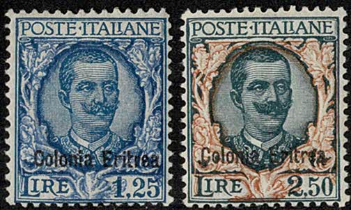 * ERITRÉIA – Yvert 128 e 129 – Sassone 126 e 127 – 350 Euros no catálogo Sassone de 2014